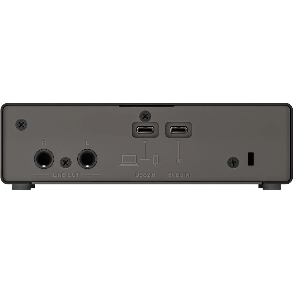 Along with the combo inputs, the front panel also provides a separate 1/4″ Hi-Z input for passive instruments such as guitar and bass, making the Yamaha UR22MK3 effective as a DI box. Each input has a dedicated gain control. The rear panel features two 1/4″ line outputs for stereo connections and two USB-C ports—one for host connections with devices and one for power input. The interface provides up to 24-bit / 192 kHz conversion for high-quality audio capture. Cross-platform and plug-and-play compatibility means this interface works with Windows, macOS, and iOS devices without the need for drivers. Compact and lightweight, this desktop interface can easily be taken with you. The Yamaha UR22MK3 includes a USB-C to USB-A cable and bundle of audio production software to get you started.