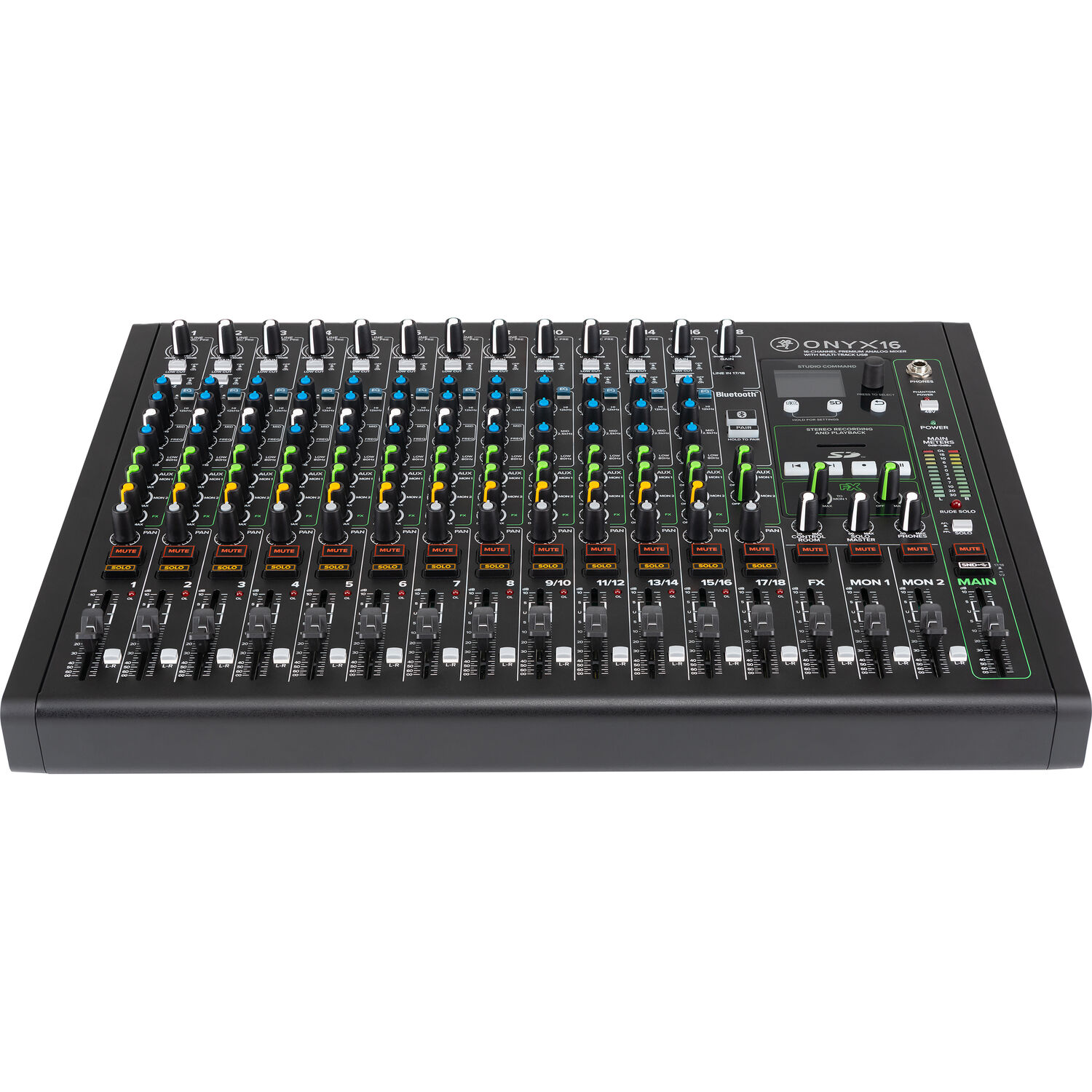 Musicians, artists, engineers, and broadcast studios looking for a professional-quality compact mixing solution for live audio, home recording, and content creation should look no further than the Mackie Onyx16, a 16-channel mixer with 24-bit / 96 kHz 18×4 multitrack recording and 12 high-gain Onyx preamps.