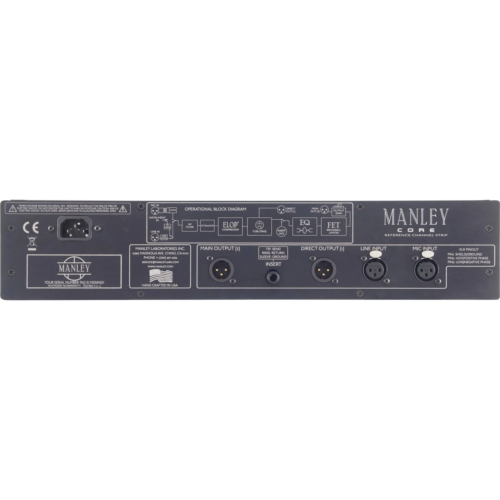 The Manley CORE Tube Reference Channel Strip is a single-channel signal processor with an intuitive front panel layout that allows for quick and easy adjustment over mic preamp, compressor, EQ, and limiter settings. The Manley CORE incorporates many of Manley’s technological innovations including the preamp from the VOXBOX, featuring a hand-wound iron transformer with nickel laminations, negative feedback gain circuit, and triode vacuum tube circuit. The direct input offers an all discrete solid-state path with a 10 MΩ impedance.